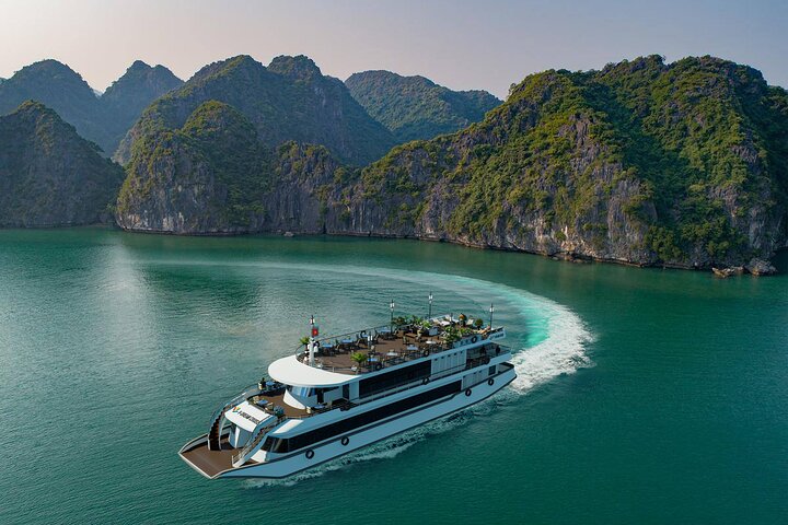DAY 4: After breakfast, visit a Latex Shop - Join the Ha Long Bay Exclusive Cruise Tour (VDREAM or HECULES) - Buffet lunch at Cruise - Enjoy activities such as karaoke, afternoon tea, visiting Sung Sot Cave, Tip Top Island & Lookout, and Hon Ga Choi Island - Dinner.